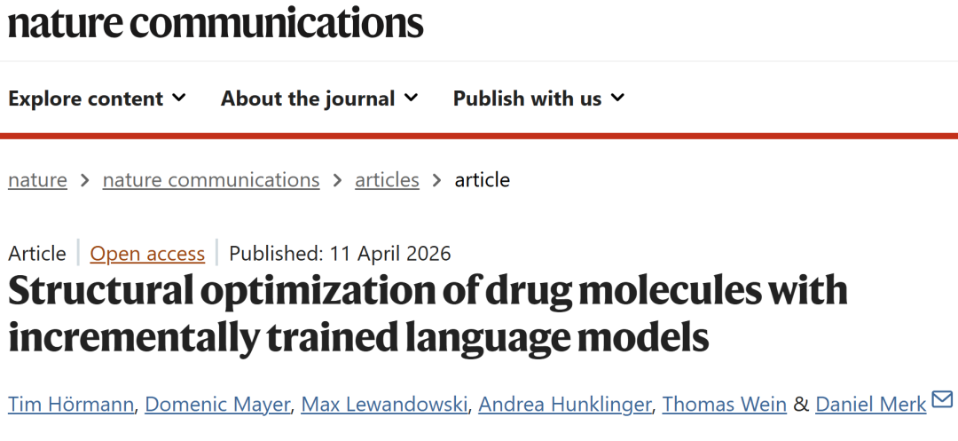 Hörmann, T., Mayer, D., Lewandowski, M. et al. Structural optimization of drug molecules with incrementally trained language models. Nat Commun (2026).