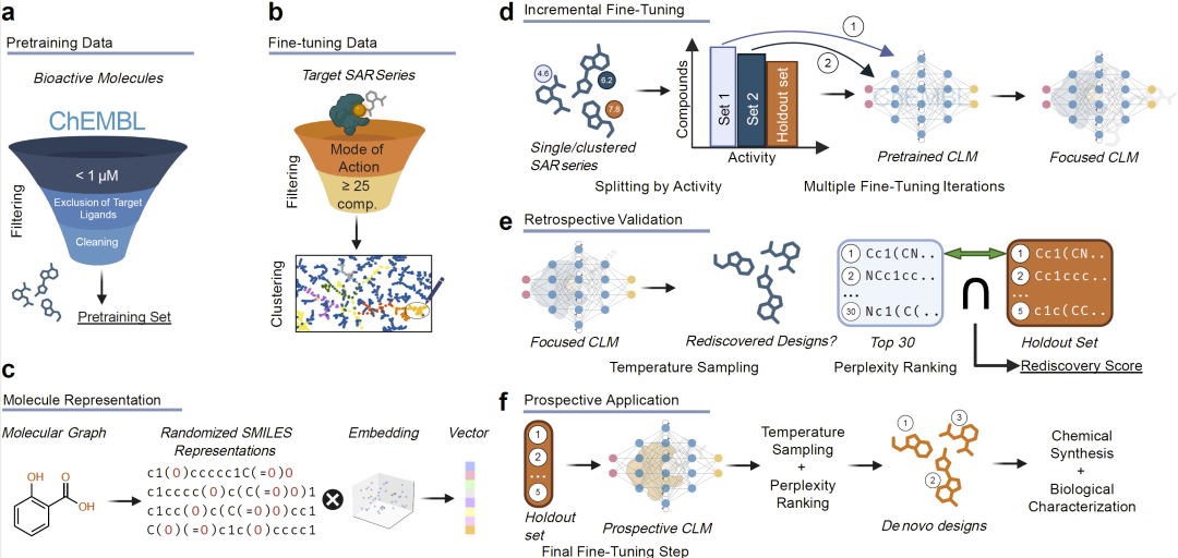 研究人员构建了一种渐进式微调策略。模型首先在大规模分子数据上预训练,并刻意去除目标相关分子,使模型对目标“无先验认知”。随后,将具有结构–活性关系的数据按活性排序,分阶段输入模型进行训练。