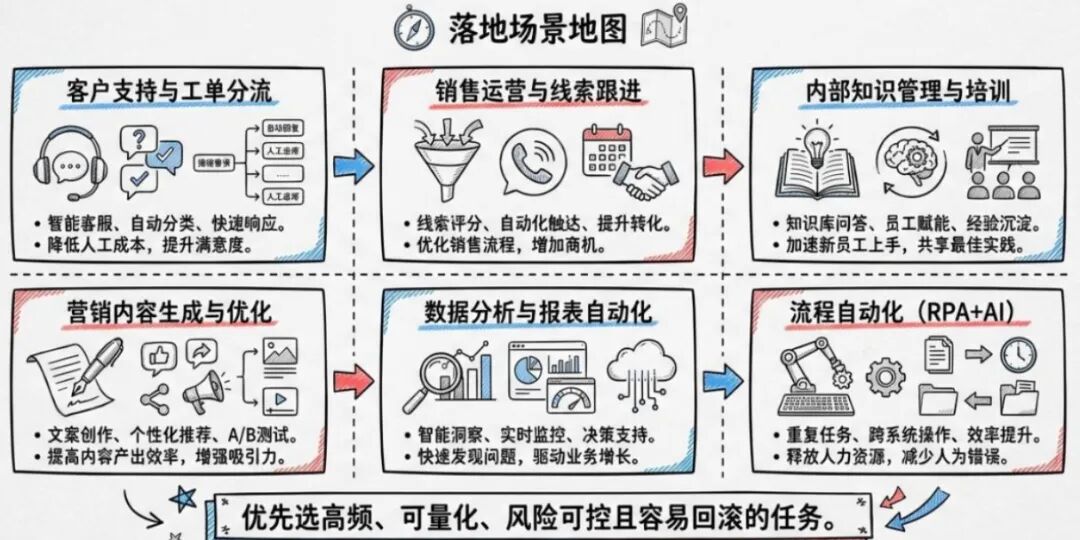 客服与运营 | ROI 最清晰,适合预处理和路由 | P0 |