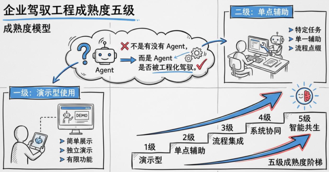 L4 | 驾驭工程 | "制度化执行环境" | 契约、权限、回滚、审计和熵控制 |