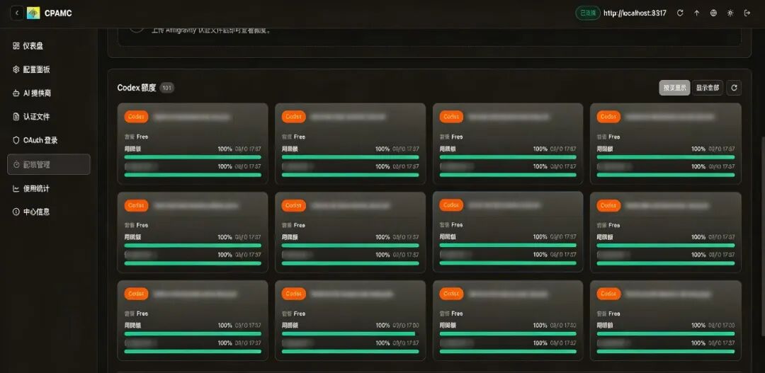 仓库地址:https://github.com/dongshuyan/CPA-Dashboard)是轻量级的ChatGPT/Codex账号管理面板,是chatgpt_register注册工具和Cli-Proxy-API-Management-Center之间的账号中转站,核心定位和作用如下: