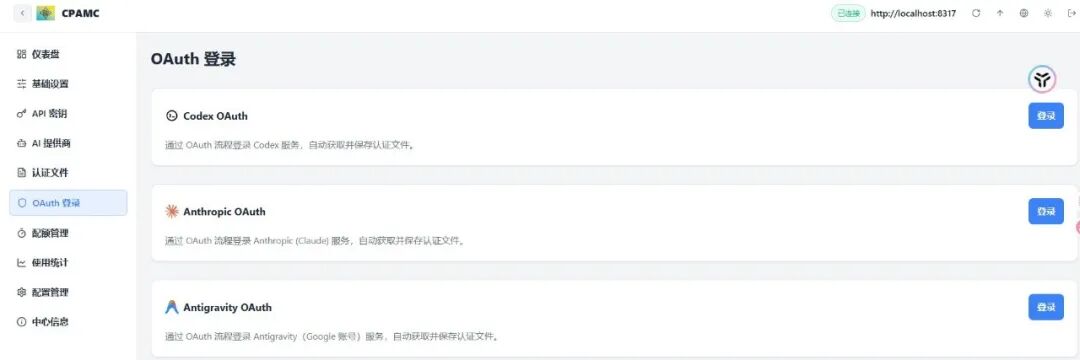 - 和Cli-Proxy-API-Management-Center的关系:Cli-Proxy-API-Management-Center可从CPA面板中同步账号/密钥信息,无需手动导入,实现“注册工具自动上传→CPA面板暂存→管理平台同步使用”的一条龙流程,让批量注册的账号能快速投入实际使用。
