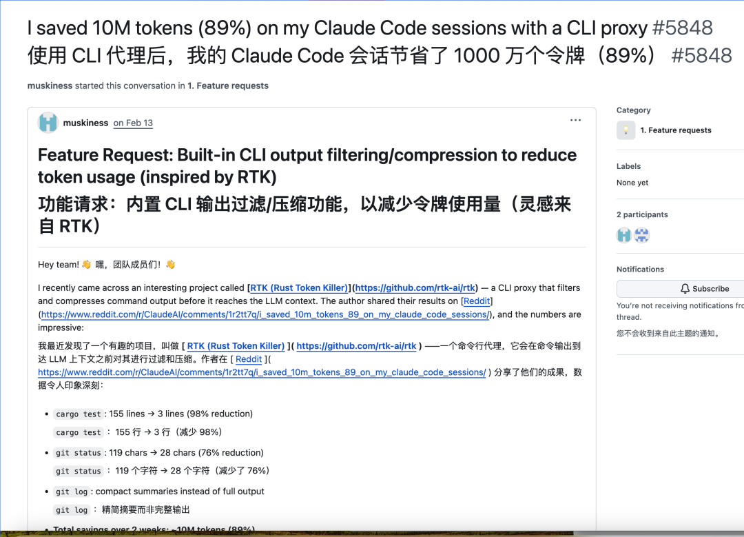 对于偶尔使用AI写代码的开发者,可能感知不到明显价值;但对于每天依赖Claude Code、Cursor的用户来说,RTK能显著降低使用成本,让AI编程从"小心翼翼算计token"变成"放心大胆使用"。