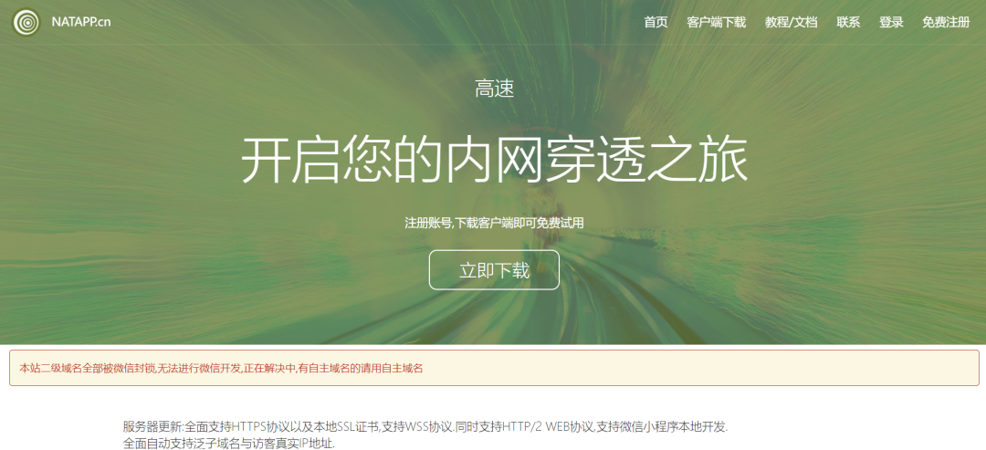 Natapp | https://natapp.cn/ | 公共服务型 | 低 | 免费隧道、带宽有限 | HTTP/TCP/UDP | 基于Ngrok优化、国内节点多 | 短期测试、游戏联机 |