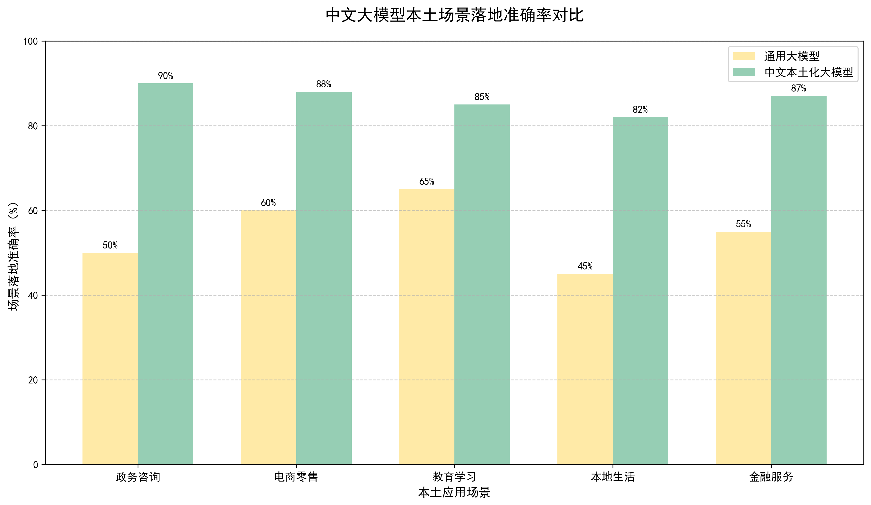 柱状图清晰对比两类模型在各层级的得分,突出本土化模型在文化适配、场景落地的显著优势;