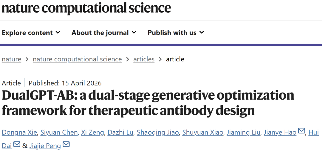 Xie, D., Chen, S., Zeng, X. et al. DualGPT-AB: a dual-stage generative optimization framework for therapeutic antibody design. Nat Comput Sci (2026).