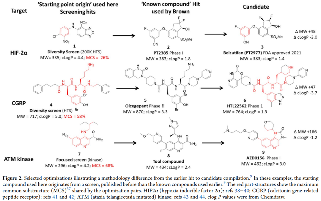 MCS高达70%意味着:选对起始化合物,本身就决定了候选药物结构的大半。在Hit-to-Lead阶段尽早确定核心骨架(preferred scaffold),是提高优化效率的关键策略。