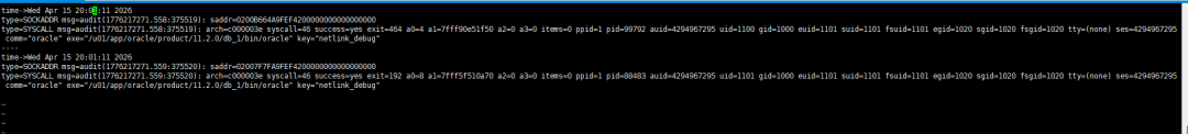 type=SYSCALL ... comm="oracle" exe="/u01/app/oracle/product/11.2.0/db_1/bin/oracle" ...