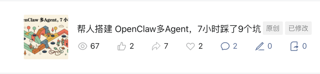 那时候我还挺自信的,我觉得自己对趋势有判断,不是那种乱蹭热点的人。我相信只要我判断得够快,写得够及时,大家迟早会看到我。就这样,在元宝最火的时候写了元宝新年红包被封禁事件,在OpenClaw最火的时候写了OpenClaw部署教程。