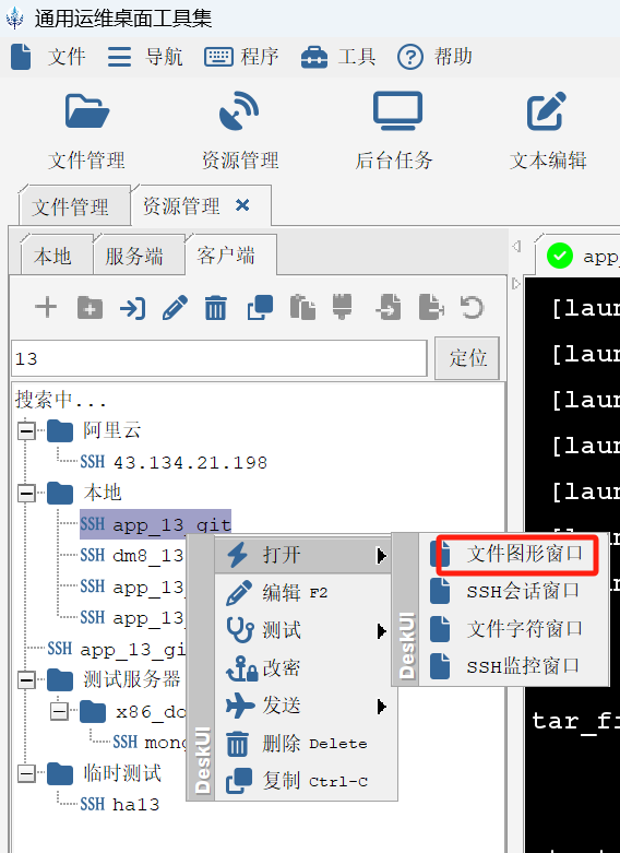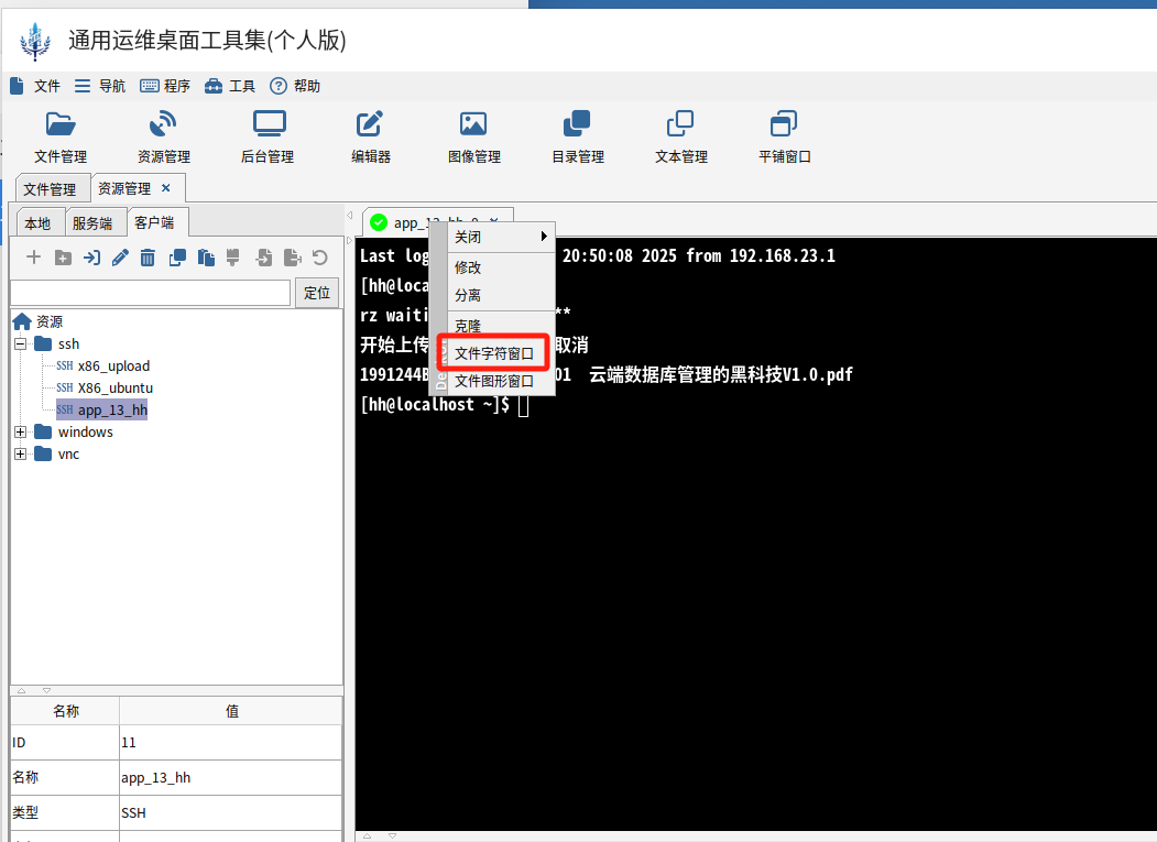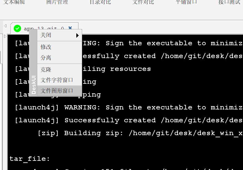 图:右键已经打开的终端窗口标签头,选择文件图形窗口