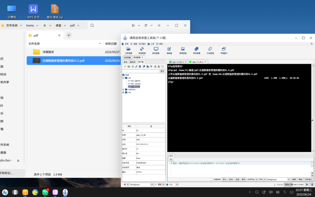 终端SFTP窗口也有两种打开方式和方法1相同。
