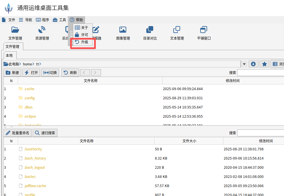 注意:desk_linux_{DATE}.tar.gz可以对deb的安装进行升级,升级过程主要有两个步骤:
