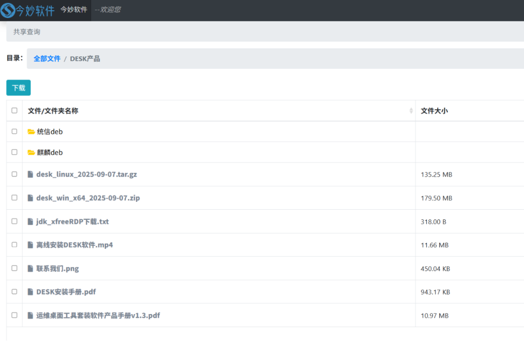2 | desk_linux_{DATE}.tar.gz | 通用Linux安装包/升级包,需要自己安装JDK,支持离线图形化升级 |