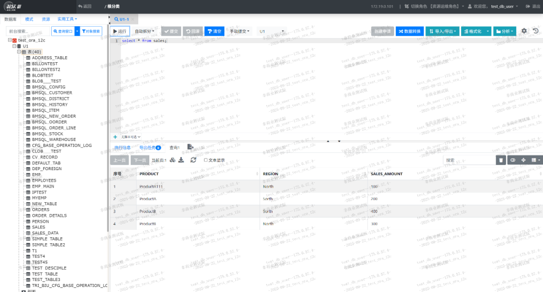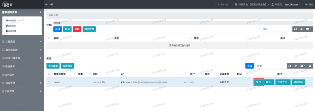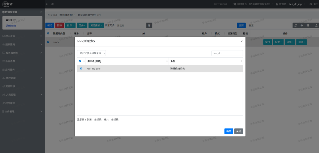 用运维人员账号test_db_user登录系统后,能够看到被授权的资源。
