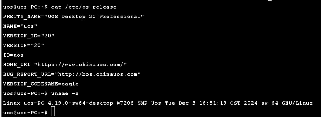 操作系统版本 | UOS 20 |