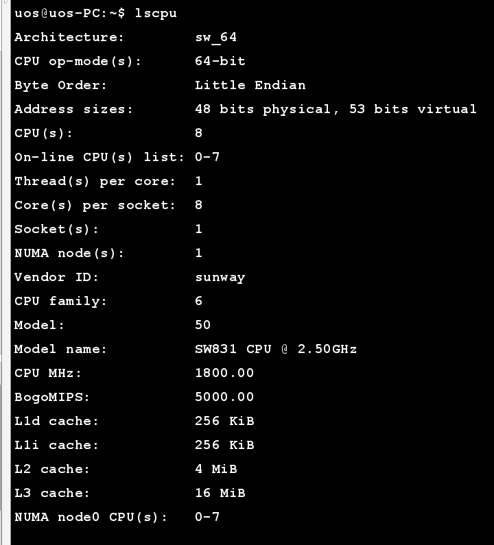 CPU架构 | SW831 CPU @ 2.50GHzCPU(s): 8 |