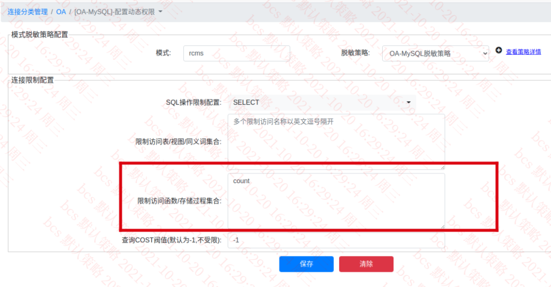 在【配置动态权限】页面中,添加“count”函数,完成后保存配置。
