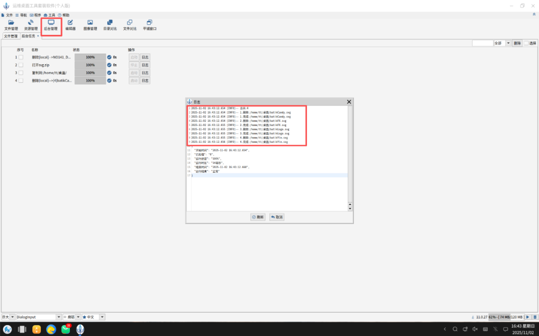 用户可以通过点击“后台管理”调取删除日志,如下图所示