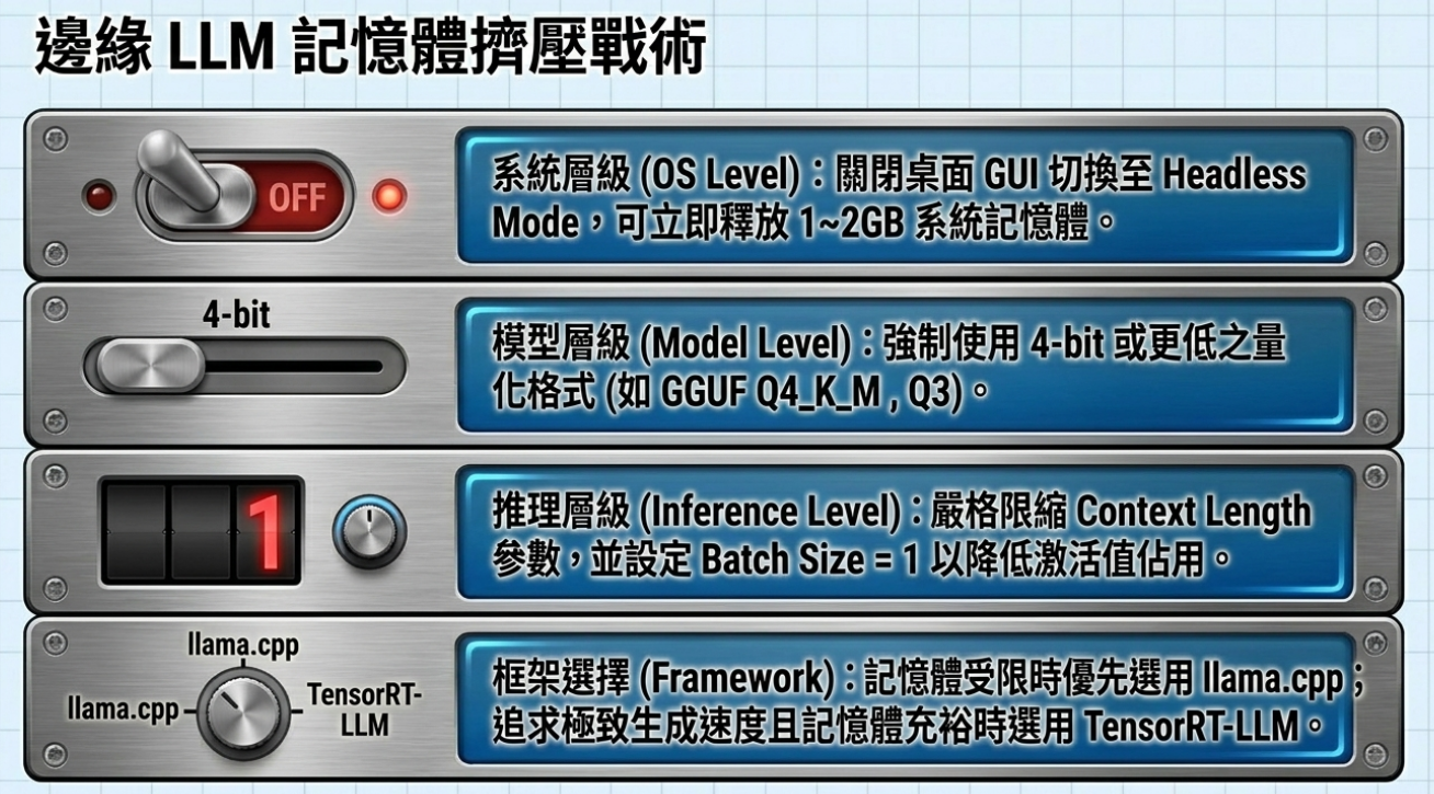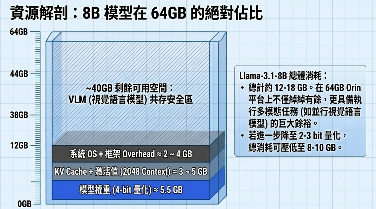 Orin NX 16GB | ~14GB | 7B ~ 8B(限4bit) | 低 | llama.cpp |