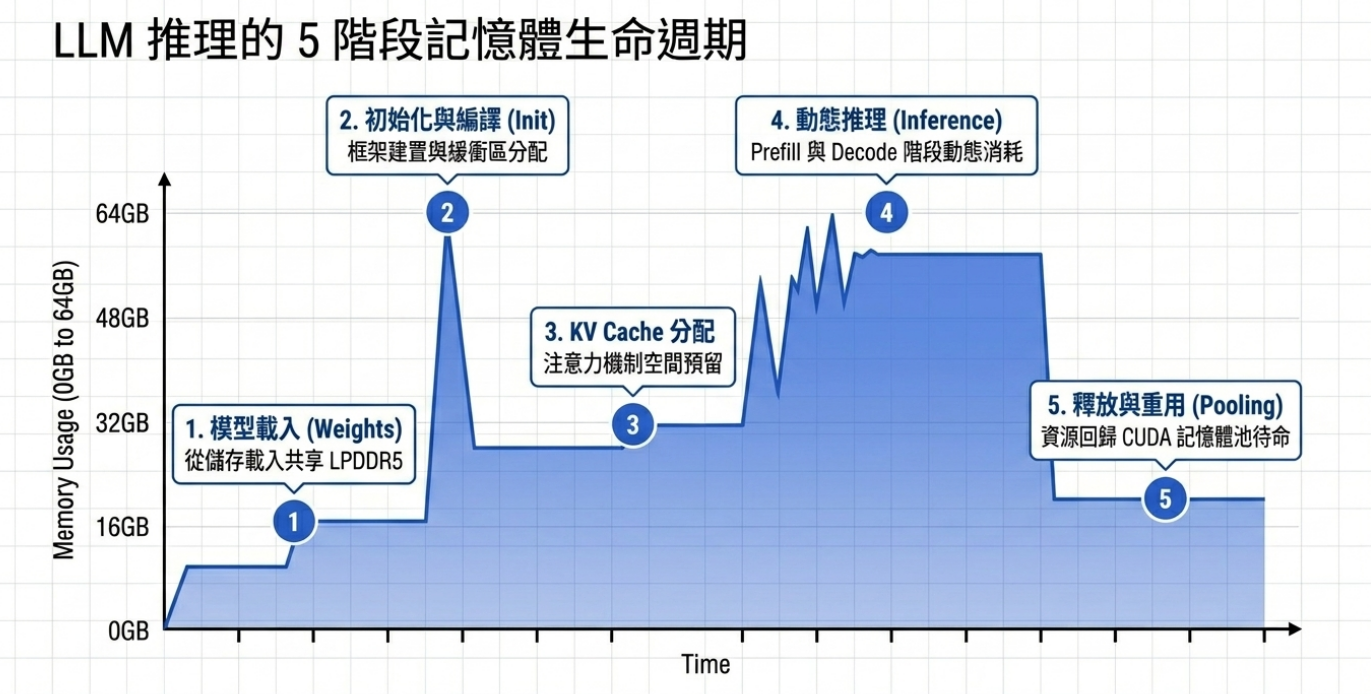 LLM 从加载到执行,会经历五个完全不同的内存行为阶段。 90% 的 OOM 都发生在这里。