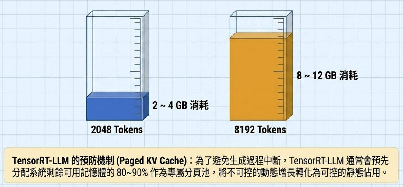 KV Cache 用于缓存过去所有 token 的注意力状态,是执行期最大内存开销。