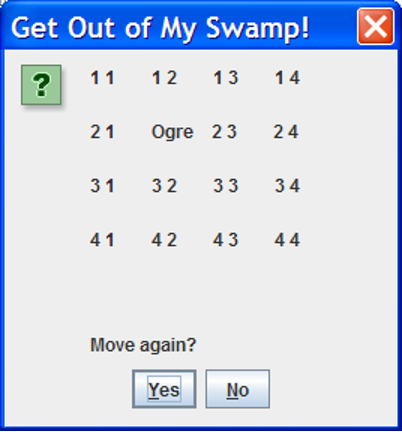 您可以使用System.out.println("...")将信息打印到终端。您只需将所有内容放入String并打印出来即可。你将能够看到每次你移动,看到以前的移动,并添加更详细的信息,如果你想。假设网格位于Arraylist grid中,下面的代码将帮助您了解它是如何工作的。