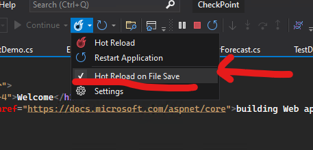 在热重加载中,您可以选择默认选择的Hot Reload On File Save**(Not ),然后VS将在您的** ctrl+s**;**之后重新加载