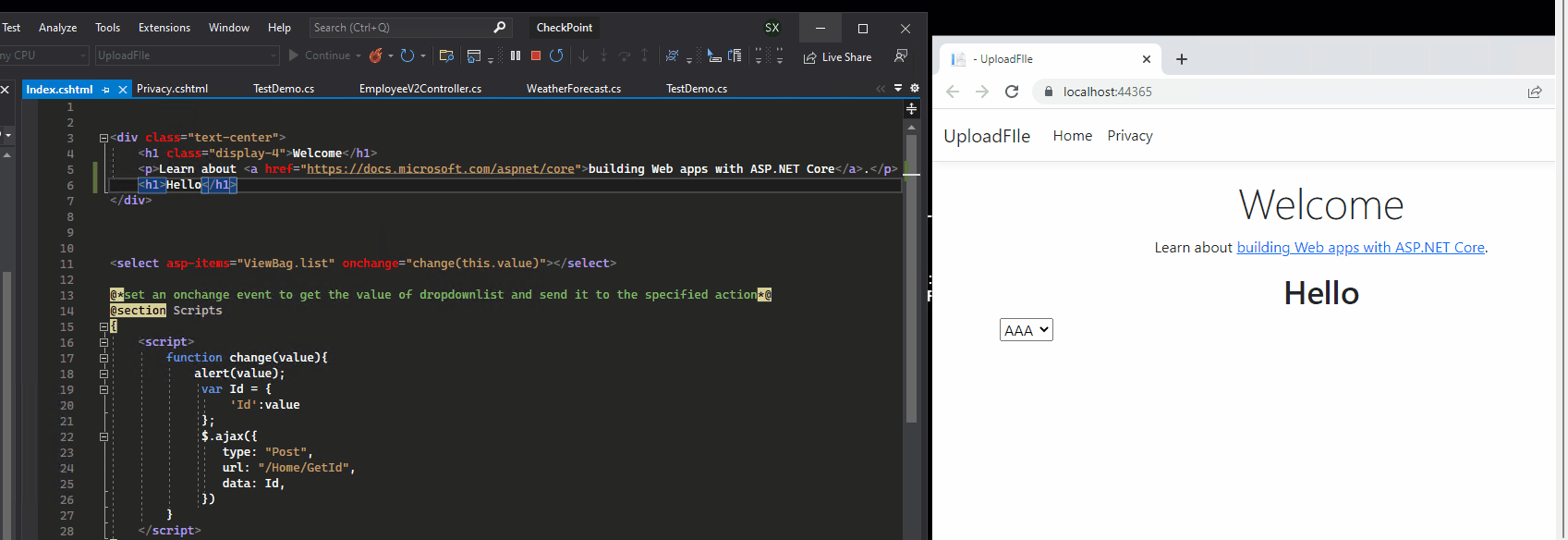 当我们在VS 2019中运行这些项目时,我们可以刷新任何项目中的页面,我们将看到更新。这里有没有我们缺少的设置?