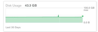 100 of的可用存储和磁盘和70 of的数据库大小+索引大小之间有什么区别?我们应该关注的是,70 GB正在接近100 GB,还是只有43.3 GB的光盘使用量才是最重要的?