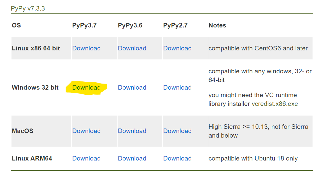我首先从下面高亮显示的链接下载PyPy并将其解压缩到桌面上,这是这里。