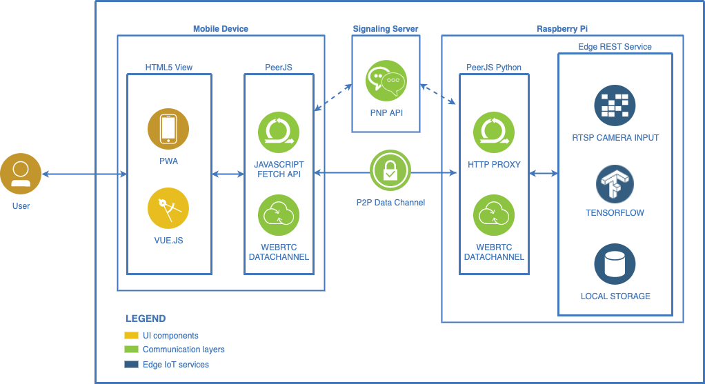 请参阅此技术博客文章,其中详细介绍了设计和实现:https://webrtchacks.com/private-home-surveillance-with-the-webrtc-datachannel/