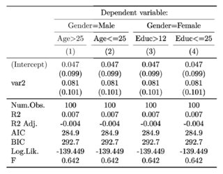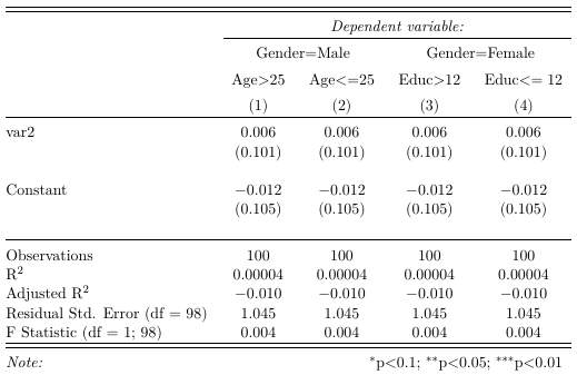 column.labels='Gender=Male Gender=Female \\\\ & Age > 25 Age <= 25 Educ>12 Educ <=12')结果