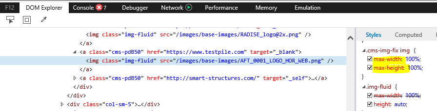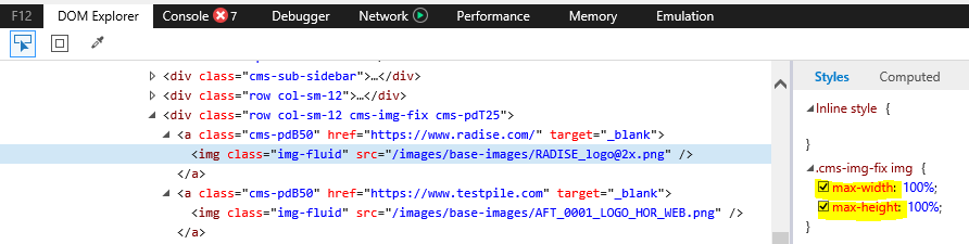 在chrome和internet 11中,然后检查公司的图像,您可以在下面的图像中观察到差异。
