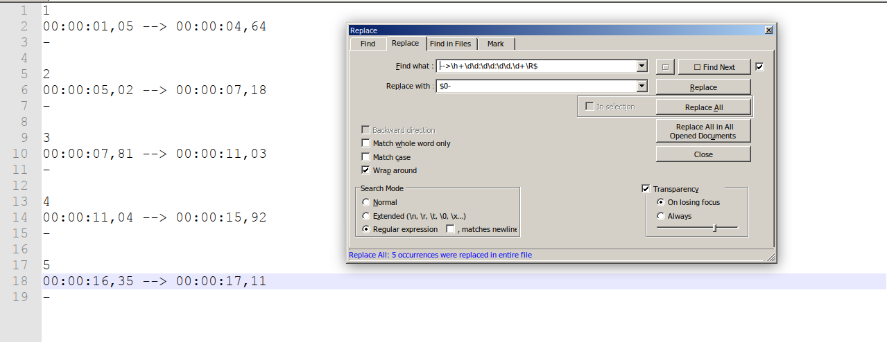 -这是不可接受的,因为它破坏了SRT的语法,当将这样的SRT上传到youtube时,它认为内容是一个单独的标题。因此,我只需要在第一行空白行中放置一个破折号,这一行就在时间码的正下方。