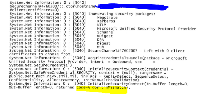添加了System.Net跟踪,下面是我发现的有趣的部分。算法失配