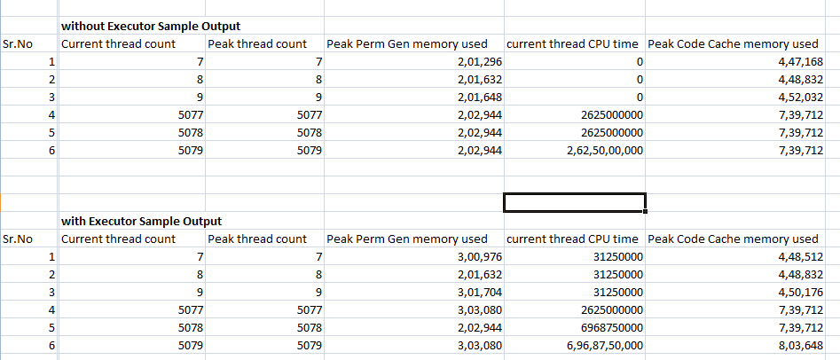 我试图找出使用executor (用于维护线程池)的普通多线程和多线程之间的性能差异。