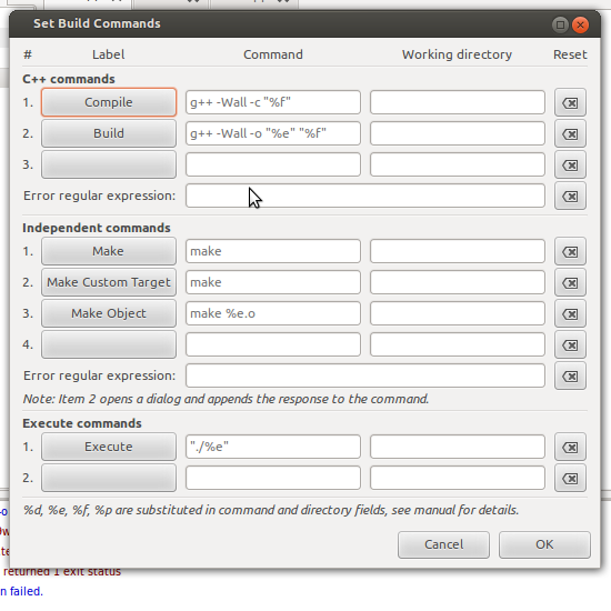 这是文件。编译和构建命令是geany 1.22的缺省值。