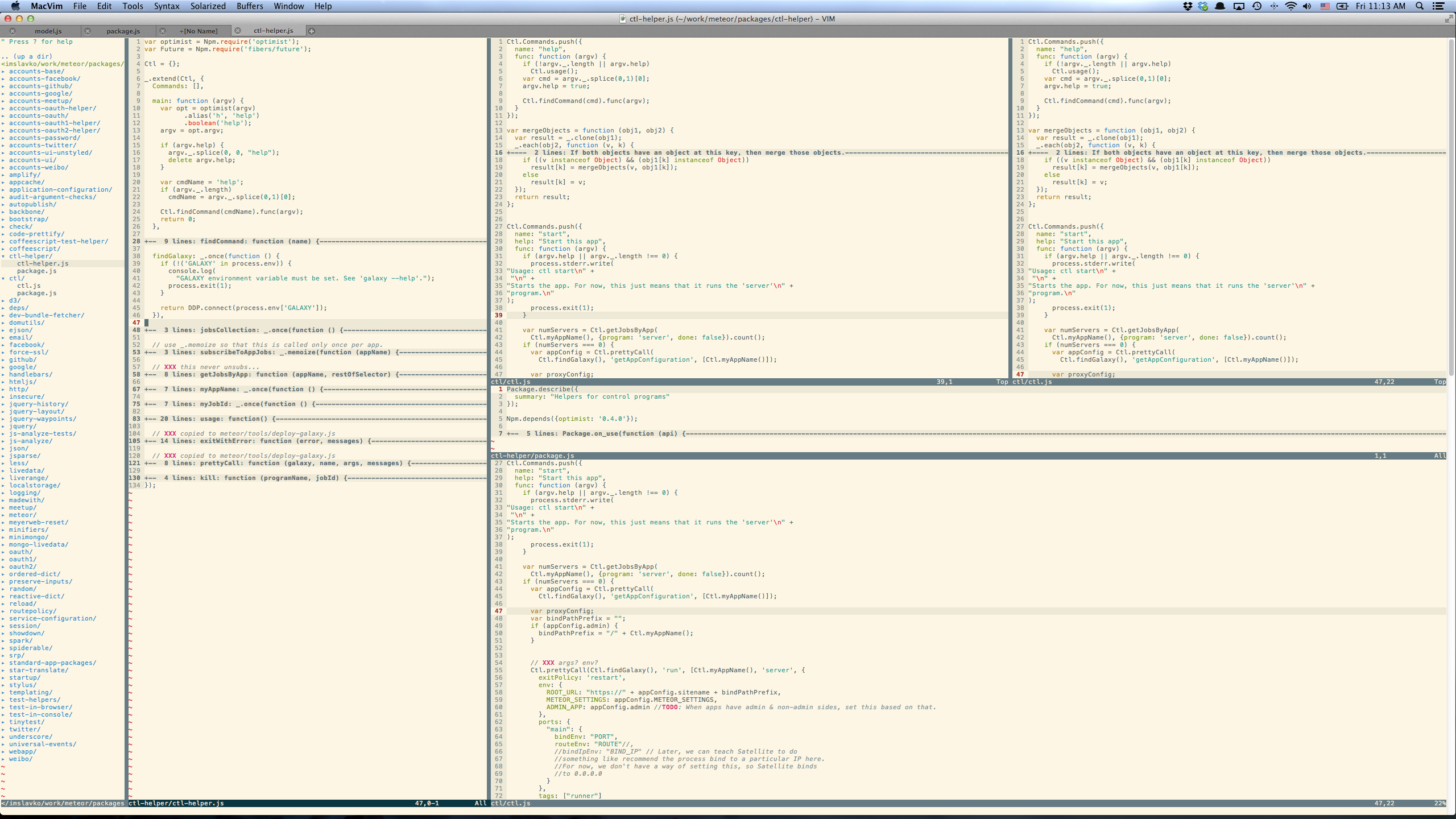 只有当我真的需要将两个文件并排在一起时,我才会使用splits (因为其中一个文件通常被用作引用,例如HTML )。否则,我只使用加载在单个窗口中的常规缓冲区。我也不使用书呆子树或任何会占用太多空间的东西。