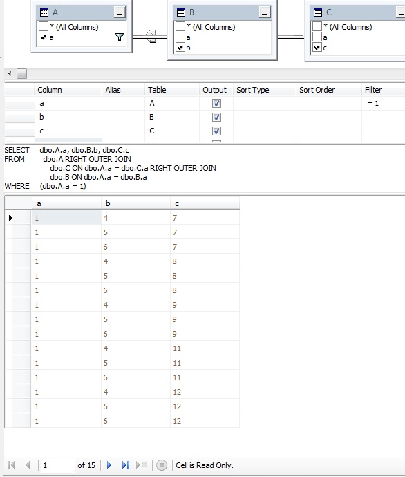 我想从A,B,C获得所有数据,其中a=1