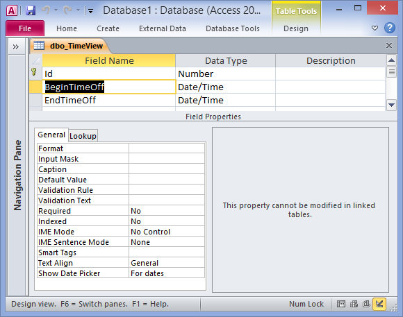 FROM dbo.TimeTest然后,如果链接到该视图,则这些列将显示为Access中的Date/Time值