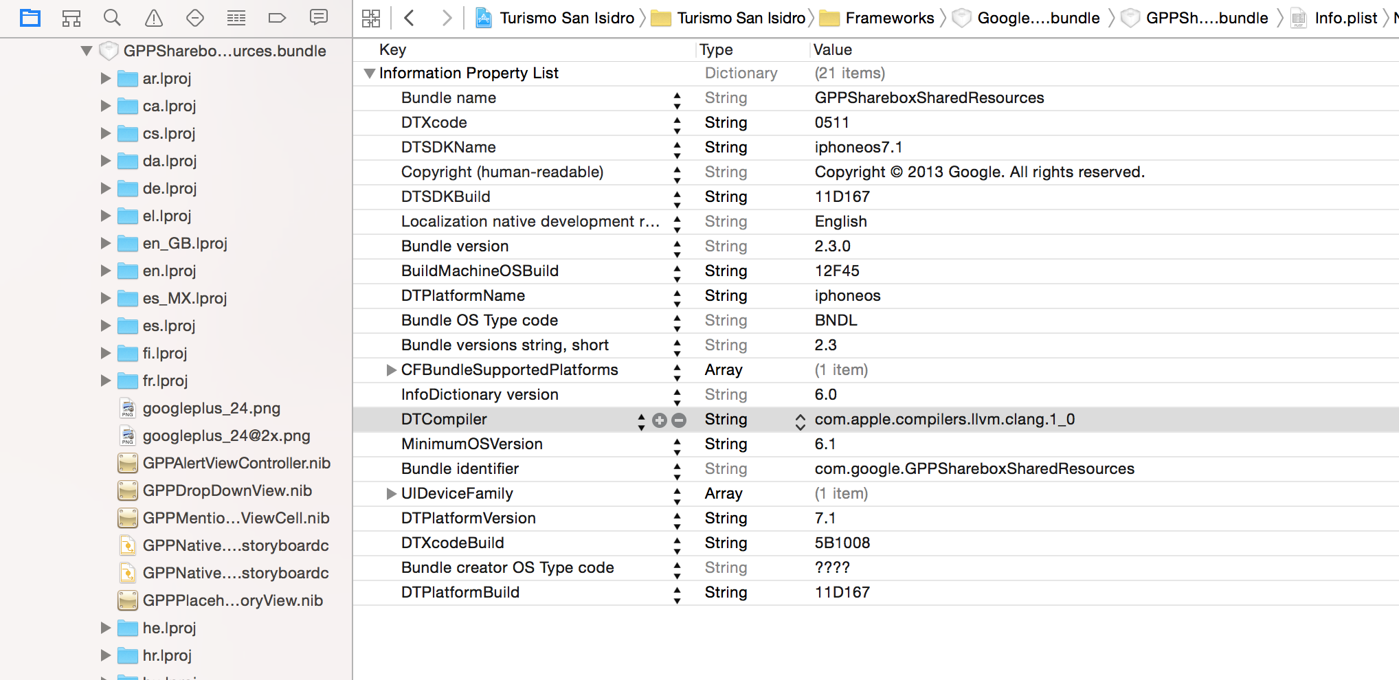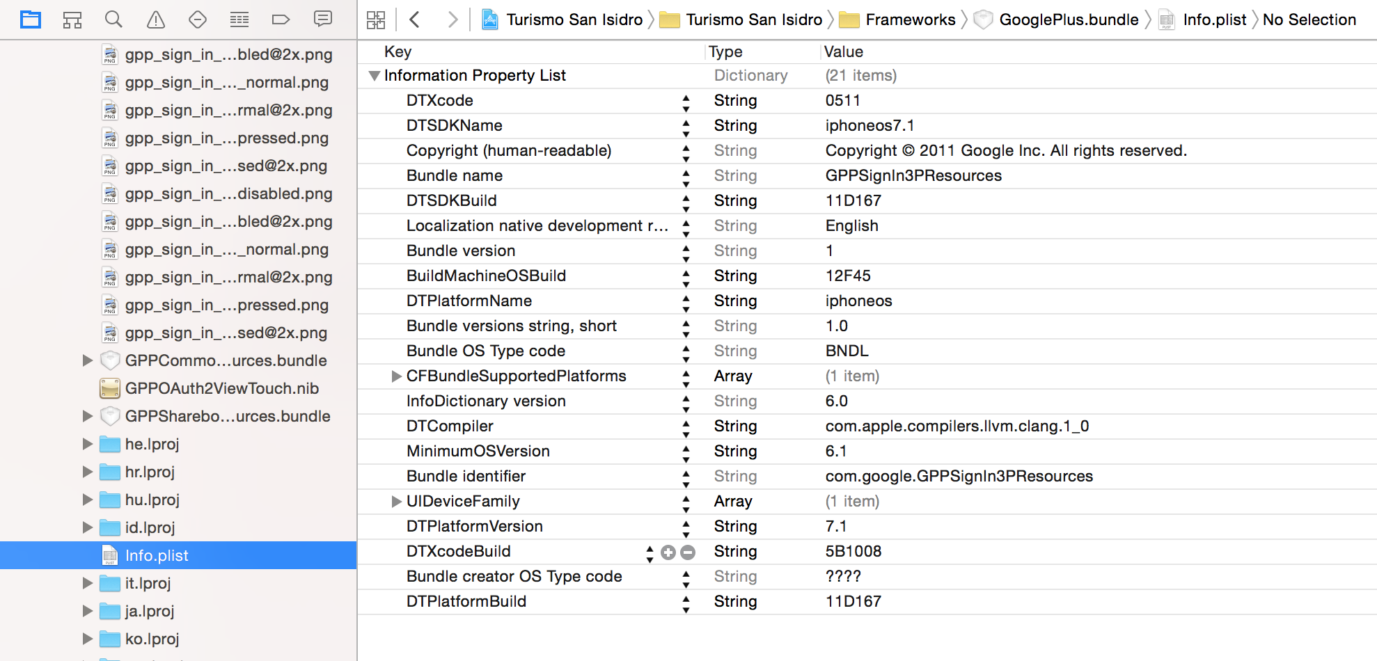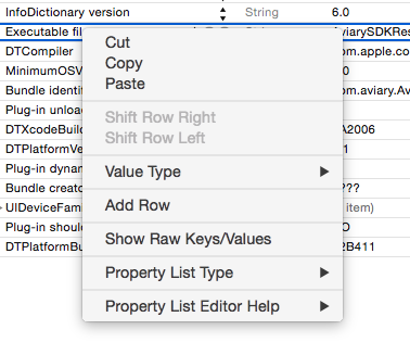 一旦编辑了plist,您可能会看到描述性名称(而不是CFBundleExecutable和其他键)。我无法在外部编辑器中编辑该文件,因此必须通过右键单击列表来切换到查看原始键/值: