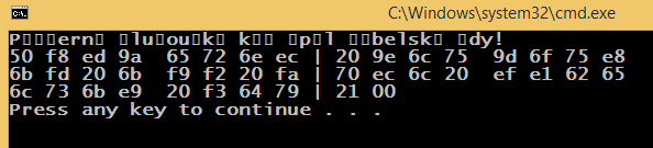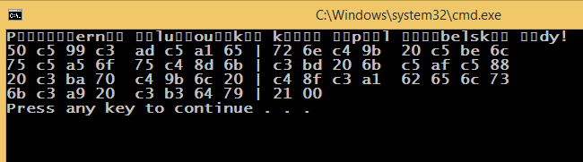 cout << "\n-------- Windows Central European (1250) set for the cmd console --------\n";