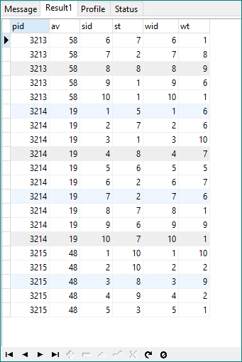 (sid=1,st>=5) and (sid=2,st>=7)这将根据屏幕截图从我的表中得到两个PIDS-3214和3215。pid 3213不满足条件,因此不返回。
