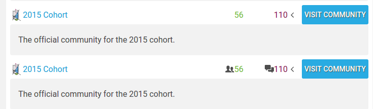 您可以在下面看到(并忽略我的填充问题与按钮),第一行没有小脑袋和词泡图标。这是一个间歇性的问题-如果我重新加载页面,它可能是好的,或者可能没有任何图标将加载。