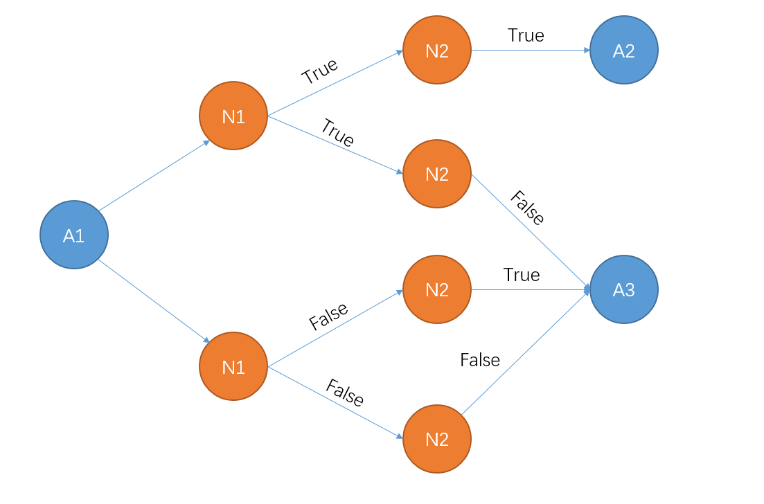 具体来说,我扩展了从A1到Ni的所有路径,并将所有Ni=true to A2*和到A3的所有其他路径链接为下图: