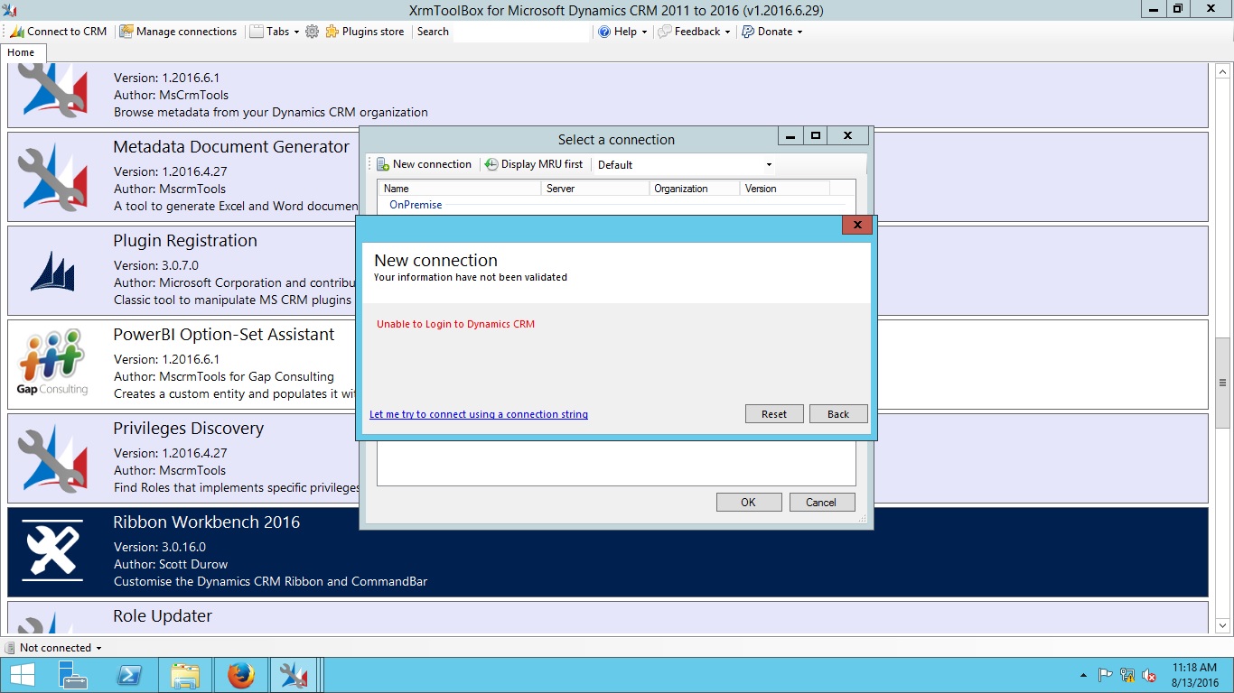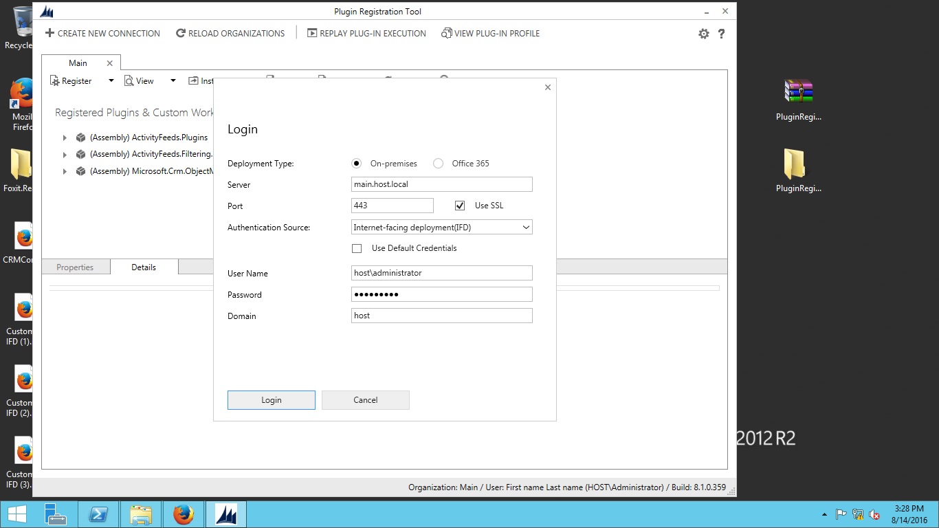 我有微软动力CRM 2016的前提和IFD启用了它。在这种情况下,我无法连接插件注册到CRM。甚至连我都无法与XRMtoolbox连接。我的问题是什么是主页域URL?