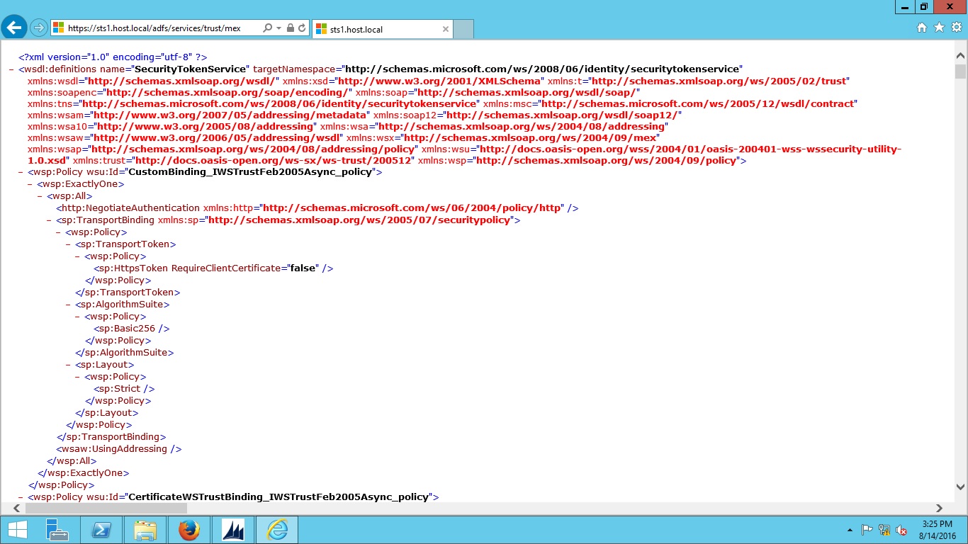 Set-ADFSProperties –nettcpport: 809我选择809作为我的端口,您可以选择任何您想要的端口,除了443或80或90,然后像在重新启动IIS和重新启动ADFS服务之前一样,然后您可以看到元数据,并且可以在前提IFD模式下与任何应用程序连接到CRM 2016。