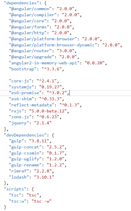 我尝试过使用2+内核运行angular( ASP.NET )的不同方式,发现gulp是无用的,我需要systemjs,因为它可以帮助我在将来进行ng2产品支持调试。因此,我有这个棱角(2+)和材料+ AP.NET核心(1.1)+系统So模板,你不会在互联网上找到另一个地方。