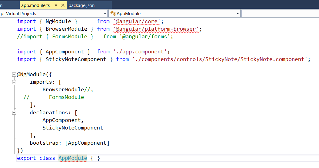 但是,我能够执行代码。我只是在VS中选择了最后一个工作构建选项,因为我所做的一切都是客户端代码,所以它是工作的。我猜这些乱七八糟的行是因为systemjs指的是https://unpkg.com。我计划将其更改为本地路径并进行检查。我将更新这个线程,如果这消除了红色的花招。