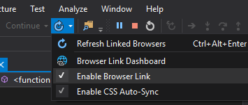 确保您启用了浏览器链接,以便看到TS断点被击中。该选项是VS2017中浏览器选择右下方的蓝色箭头圈,它似乎默认为禁用。